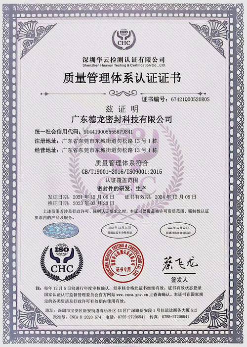 德龍密封榮獲[ISO認(rèn)證]