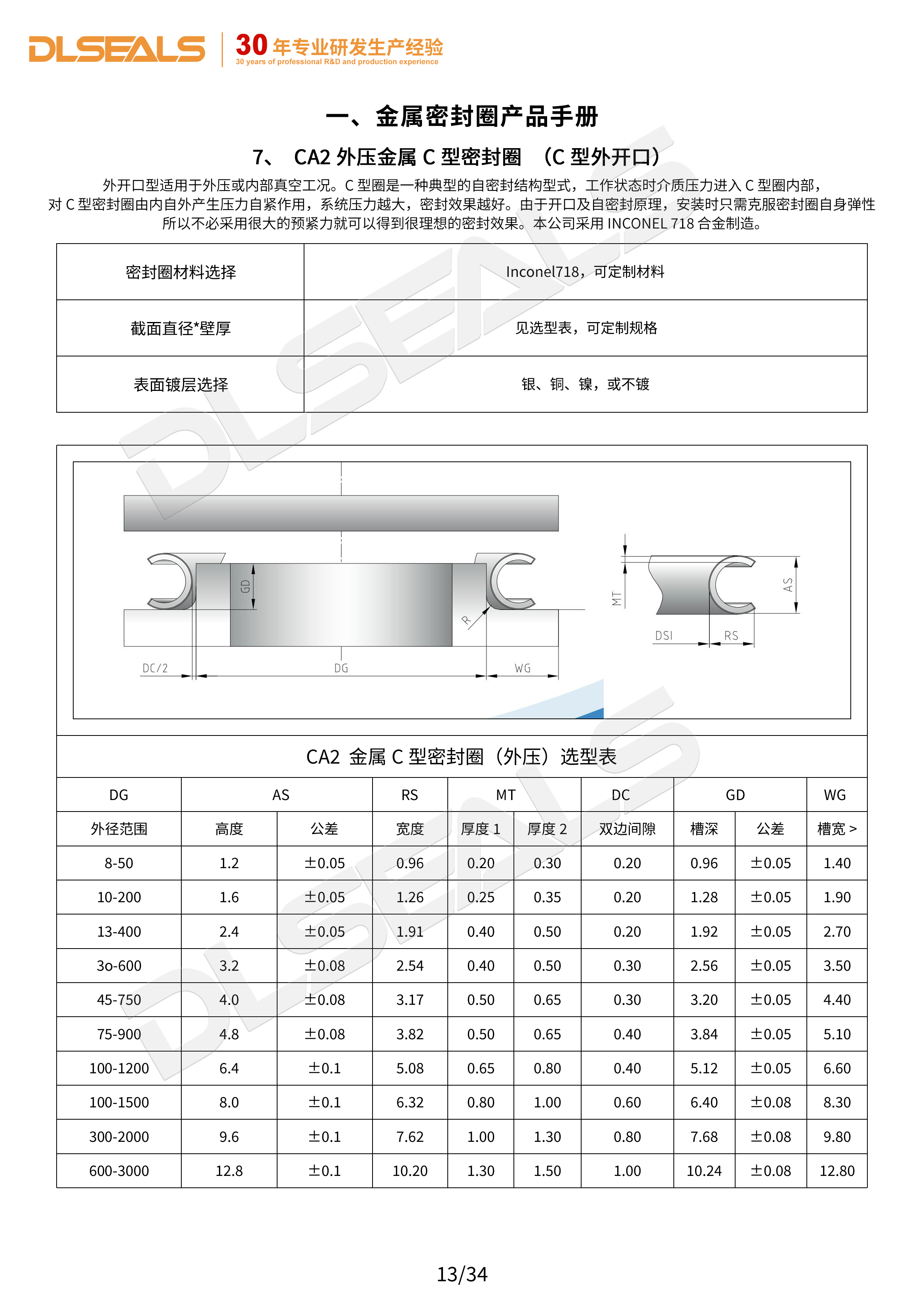 外壓金屬C型密封圈(C型外開口)